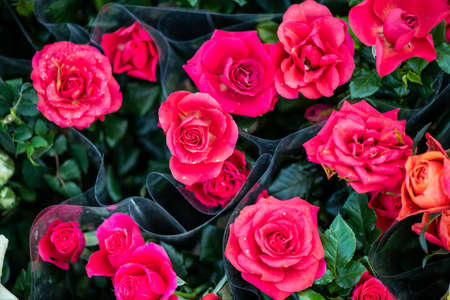 Red roses in a flower shop.Beautiful flowers for a catalog, online store. flower business. Concept flower store and delivery.