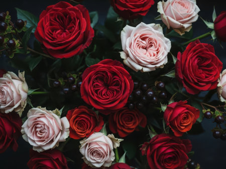 Bright floral bouquet of roses, festive mood AI Generated Image