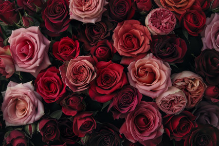 Natural fresh red roses flowers pattern wallpaper. top view, Red rose flower wall background.