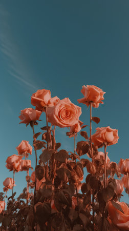 Natures Serenade: Vibrant Roses Blossoming Under a Clear Sky (3:2 Aspect Ratio)