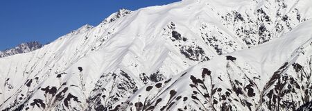 Panoramic view on mountains covered with snow at winter day. Caucasus Mountains. Georgia, region Svaneti.