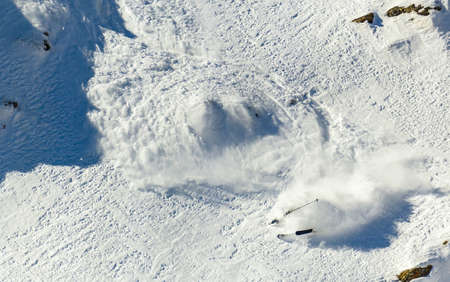 White snow collapsing and creating a powerful avalanche in a snowy mountain landscape