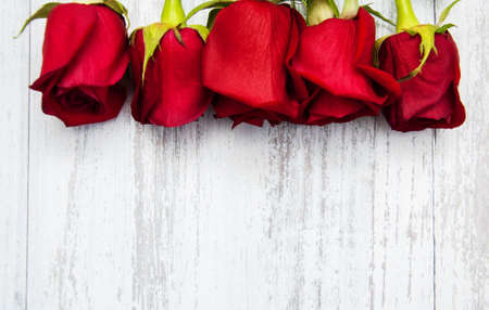 Bouquet of red roses on a old wooden background