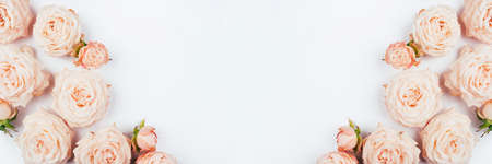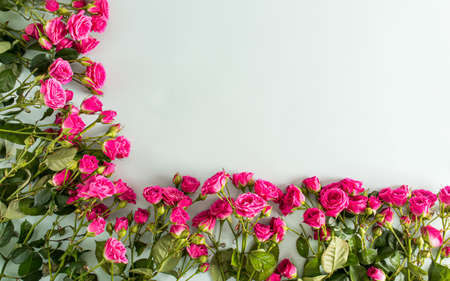 floral festive background, flower frame, rose border. Garden mini roses. a copy of the space for your text. banner, postcard