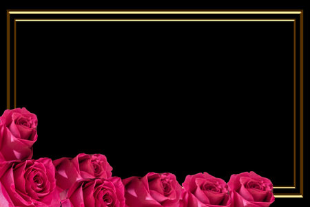 Frame with bush of red rose flowers background isolated on black