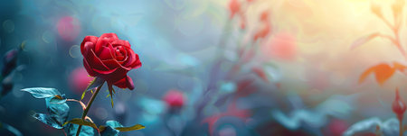 red Rose flower blooming in garden blurred of nature background, copy space concept for write text design in front background for banner, card, wallpaper, webpage, greeting card Valentine Day, white background