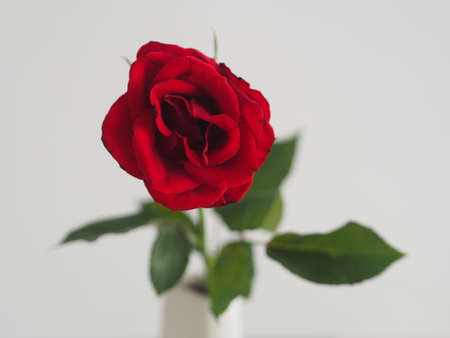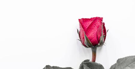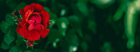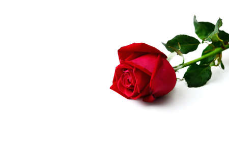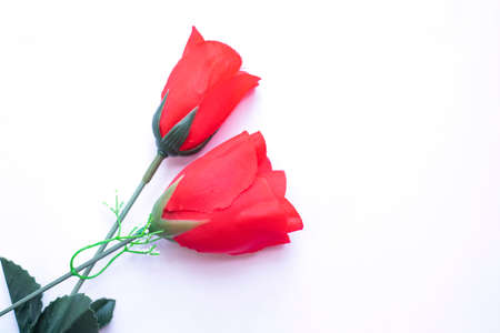 red Rose flower blooming in garden blurred of nature background, copy space concept for write text design in front background for banner, card, wallpaper, webpage, greeting card Valentine Day, white background