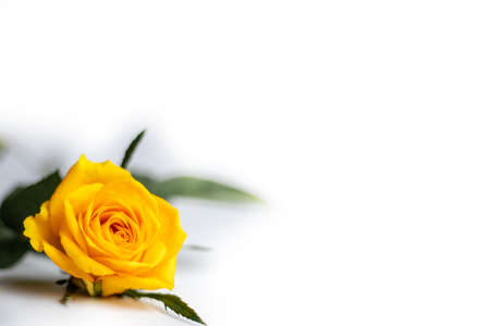 Flower and rose background. yellow roses composition. Roses and petals isolate on white background. Valentine day concept. Flat lay, top view, copy space