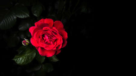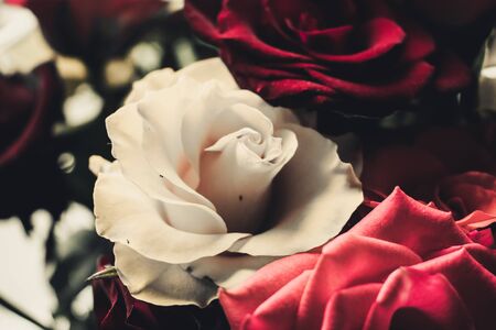 luxurious bouquet of large red roses close-up on a light background in the dark. low key photography, noir