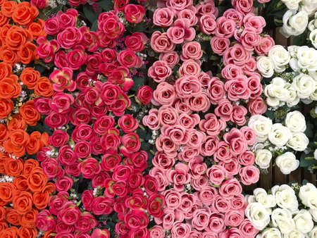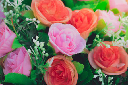Pink Rose handmade Beautiful Artificial bouquet flowers decoration ornamental background in vintage classic tone color for greeting card or celebration event design Retro, fabric and plastic, Valentine Day, love symbol
