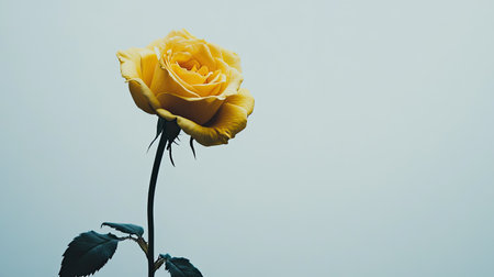 A stunning yellow rose stands gracefully against a soft background, exuding beauty and elegance. This close-up captures the delicate petals and vibrant colors.