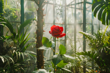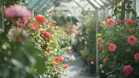 Colorful Roses Flourishing in a Serene Greenhouse During Spring