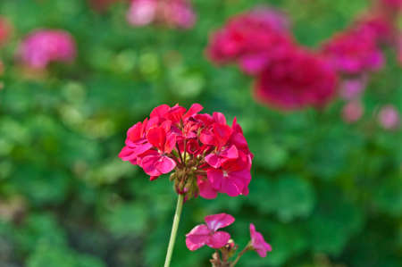 Geranium flowers in the garden. Pink geranium with many beautiful flowers. Close up image of bright pink geranium