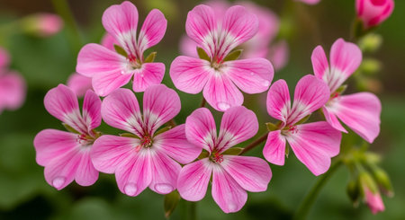 Vibrant pink geranium flowers in soft light, a floral beauty