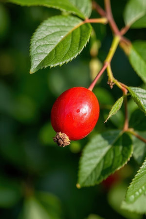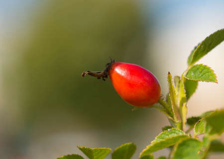 close up of healthy red rosehip berry