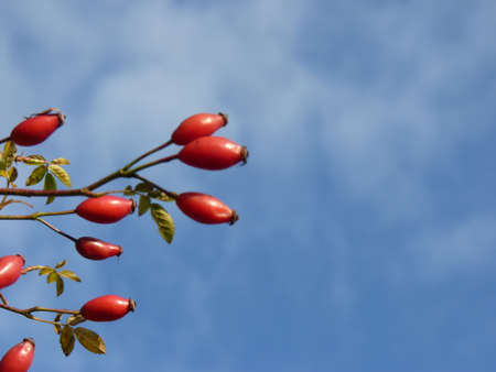 rosehips bush and blue sky