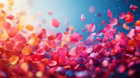 Colorful petals create a joyful confetti-like atmosphere during a festive celebration