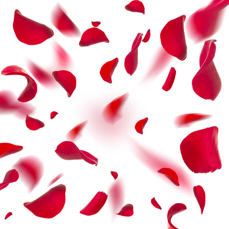 Red rose petals fall to the floor. Isolated background.
