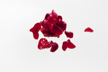 Red rose petals isolated on white background. Red rose petals.