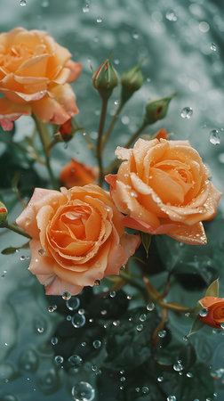 Deep red roses gleam with delicate water droplets, highlighting their rich color and texture, embodying the essence of natural beauty.