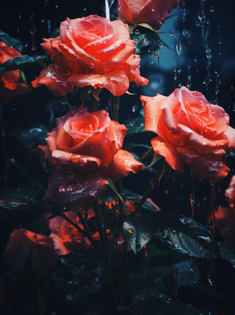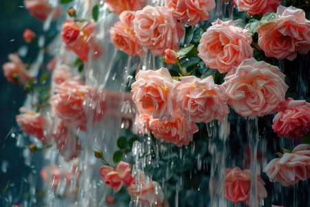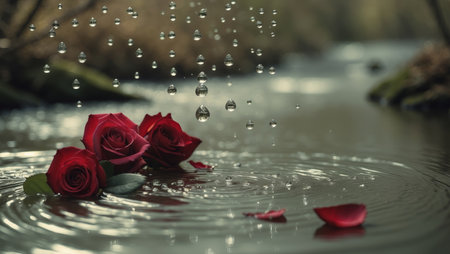 AI Generated. Water Droplets and Roses in a Mystical Stream