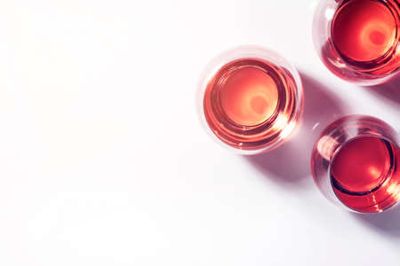 Rose wine at tasting rose wine concept and variety white background top view flat lay design horizon