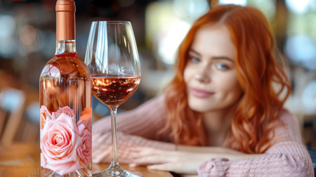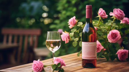 the allure of a rose wine bottle set among a backdrop of blossoming flowers, symbolizing the harmonious blend of wine and nature's bounty.