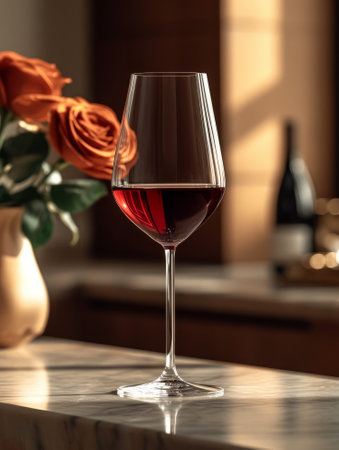 Amber Wine in a Crystal Glass Bathed in Soft Sunlight.