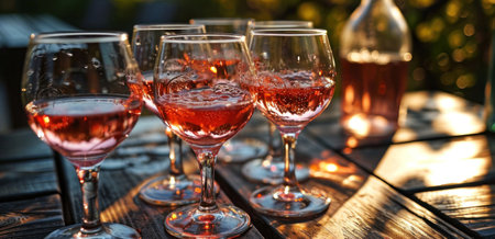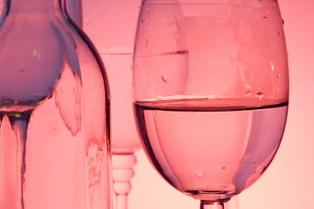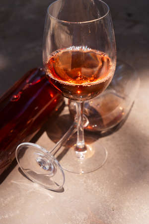 pink wine in glasses and bottle close up