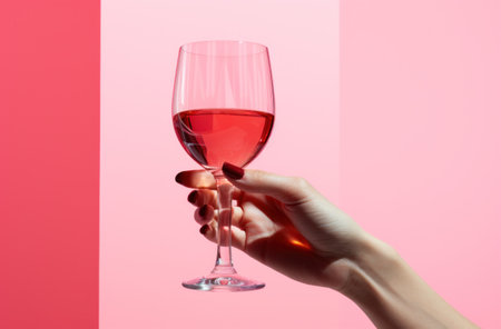 Photo Of Rose Wine In A Glass On Light Pink Background, Wineglasses, Summer Drink, Party, Wine Shop Or Wine Tasting Concept, Hard Light. Generative AI