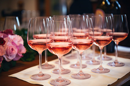 Rose wine, various types in many glasses