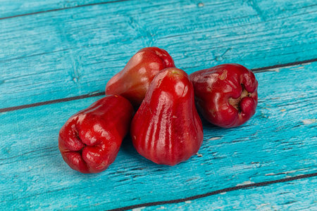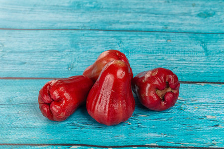Local Indonesian fruits names Jambu Air or Red Water Guava ,placed on brown wooden background