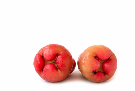 Freshly rose apple or Chomphu fruit on white background. The fruits are sweet and red or green.