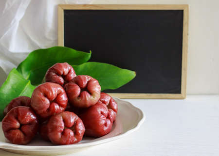 Rose apple or chomphu on white background under morning light from window.. Thailand apple fruit flavors of sweet red gloss.
