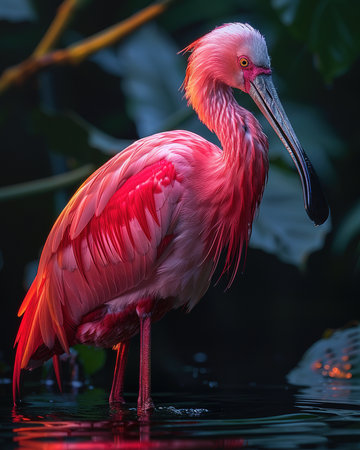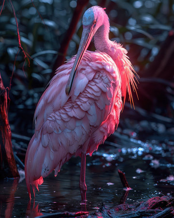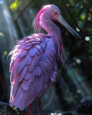 Roseate spoonbill (Platalea ajaja) in the rainforest
