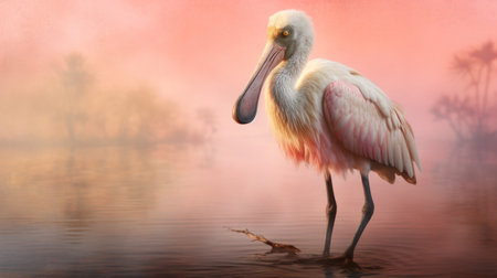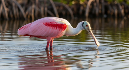 Roseate Spoonbill (Platalea ajaja) in the golden hour, J.N. ''Ding'' Darling National Wildlife Refuge, Sanibel Island, Florida