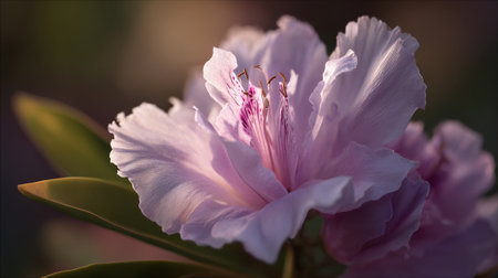 Graceful Rhododendron Blossom Bathed in Golden Sunlight, Delicate Details