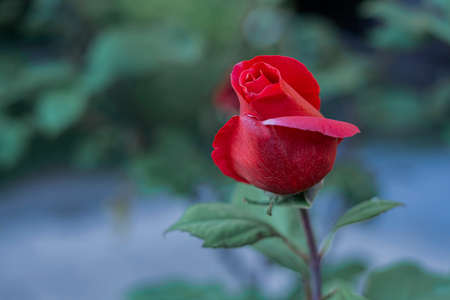 Red rose bud in the garden, closeup of a red rose