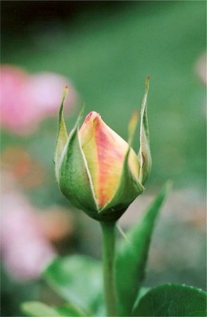 A close-up of a rose bud, ready to bloom, symbolizing potential and anticipation.