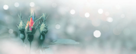 Rose buds on blurred background and shiny glowing bokeh