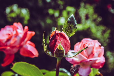 Beauty delicate rosebud pink roses at sunny day