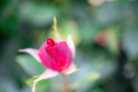 macro photo of colorful bud rose flower in my garden
