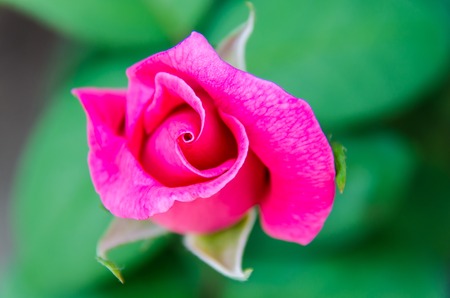 Macro pink rose, young flower close up view. Spring background. Selective focus.