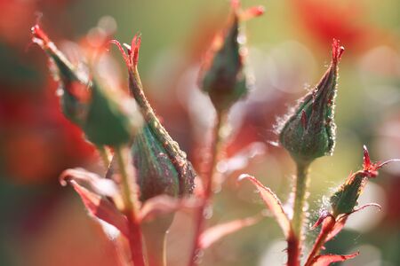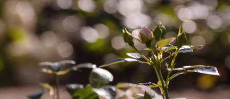 Fresh beautiful rose buds highlighted with a sunbeam
