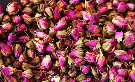 Dried rose bud tea texture background, Healthy herbal tea