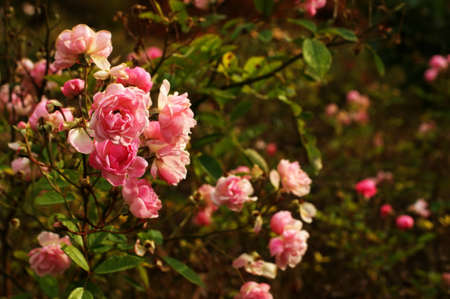 Beautiful tender blossoming pink roses in summer garden