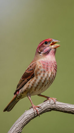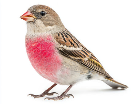 linnet stands proudly, its small body adorned with a striking red chest. This charming bird captures the essence of beauty in nature, alone in a bright, minimalist setting.