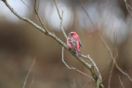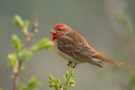 Great rosefinch (Carpodacus rubicilla) single bird on branch
