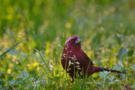 Male common rosefinch (Carpodacus erythrinus) with beautiful red colored head.