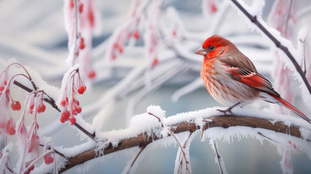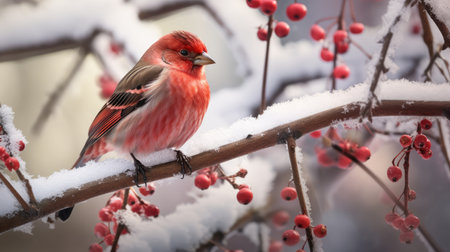 finches in a natural forest setting, captured with a canon eos 5d mark iv, showcasing bold and vibrant colors in a monochromatic color scheme. the realistic animal portraits reflect the influence of peter blume's art, while the light magenta and red hues add a touch of confucian ideology to the wallpaper. ai generated